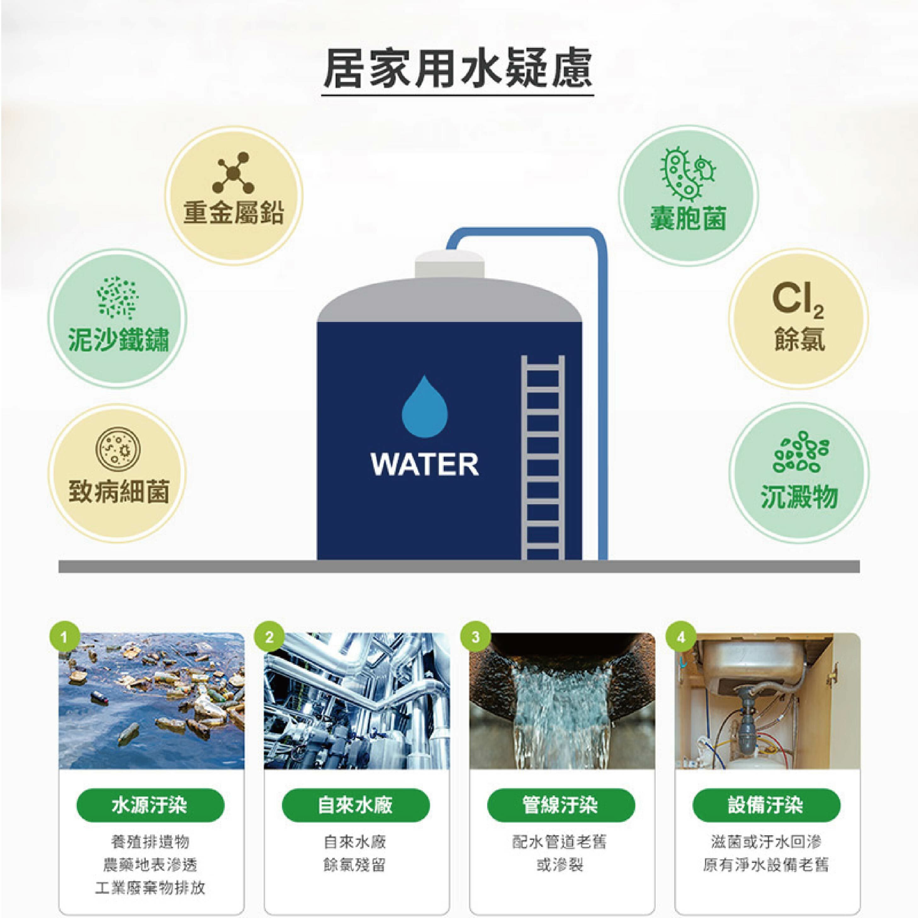 ◆選用通過美國NSF認證(42.53)的高密度活性碳棒濾心,有效濾除餘氯及異味、沈積物、孢囊菌、重金屬鉛。
