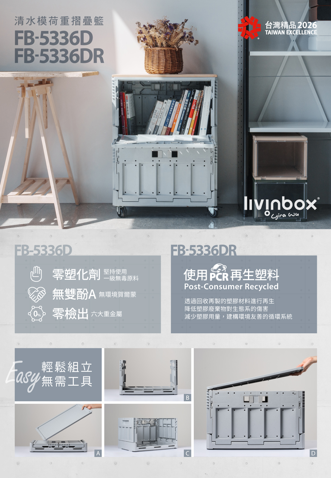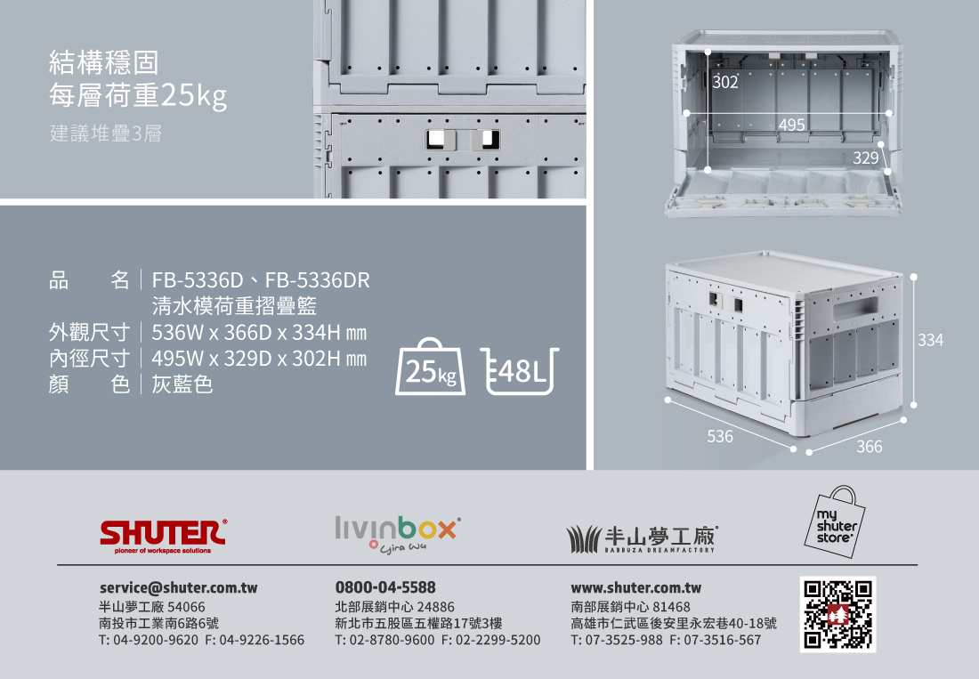 FB 清水模摺疊收納箱FB-5336DR